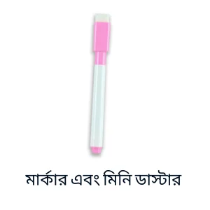 মার্কার দিয়ে লেখা যায় এবং মিনি ডাস্টার দিয়ে সহজেই মুছে ফেলা যায়, যা শেখার অভিজ্ঞতাকে আরও মজাদার ও ইন্টারেক্টিভ করে তোলে।